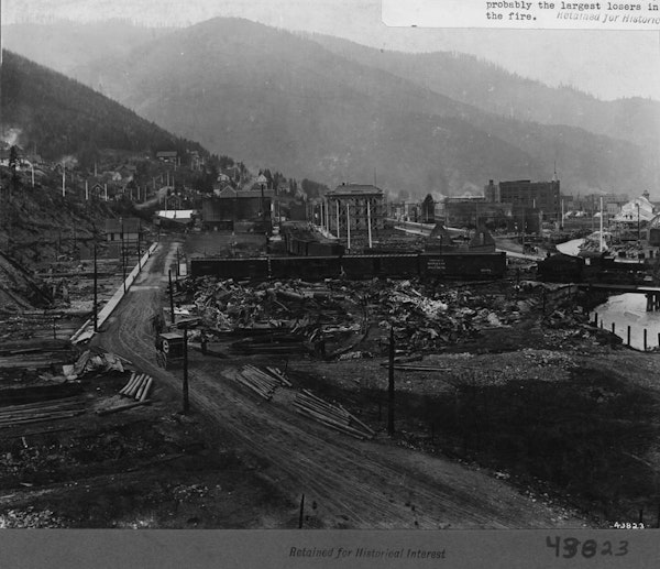 Too weak to walk, the men crawled out of the mine towards the creek with hopes of quenching their thirst. They were very disappointed to find that the water was hot and full of ash. With what little strength they could muster, they headed towards Wallace, making their way through fallen trees, burning logs, and smoke-filled air before reaching the safety of the town.