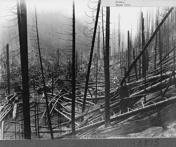 The Great Fire of 1910 burned over three million acres of forest, devastating the region. Seventy-eight firefighters, including the six of Pulaski’s men, died while fighting the fire.