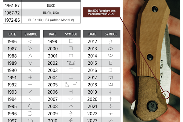 How old is my Buck knife? We stamp symbols onto your blade to indicate when your knife was made. Refer to our Date Code Chart to find out the age of your knife.