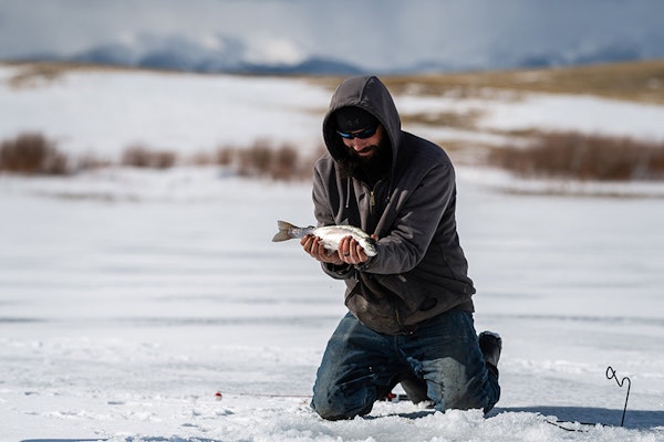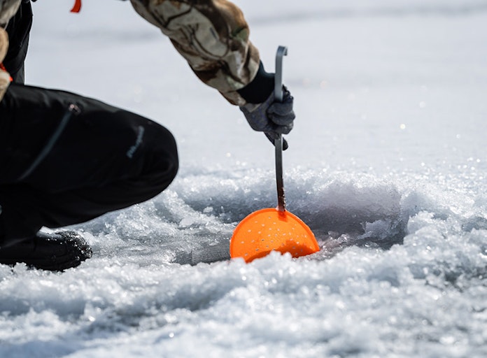 Though it’s relatively safe as long as you’re using good judgement, ice fishing comes with some inherent risk. There’s no such thing as completely safe ice, it melts and cracks and has varying degrees of strength and thickness. Never fish over moving water. Four inches of clear ice is considered safe to walk on, while six inches will support an ATV or snowmobile. To drive a truck onto the ice, there should be a solid foot of good, stable ice. Check in with the local bait shops or the Fish and Game office for up-to-date ice reports. Lakes and ponds will have specific regulations for ice fishing, like catch-and-release rules, or restrictions on live bait, so be sure to know before you go.