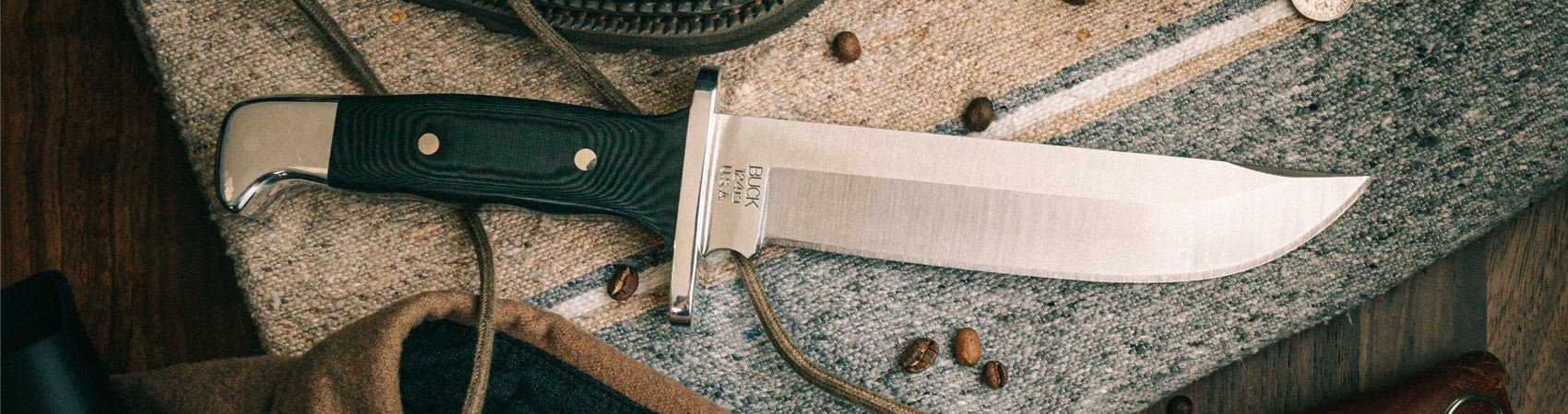 After its discontinuation in 1997, collectors and outdoorsman alike were clamoring for its return. Buck obliged and the 124 Frontiersman reemerged as part of the Legacy Collection in the 2012 catalog. Today the 11 3/4″ knife features a 6 1/4″ blade, a black Micarta® handle with aluminum pommel and guard, and a black leather sheath. It has firmly cemented itself back into the Buck Knives line up as one of our customer favorites.