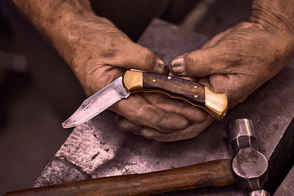 The majority of the knives that come into the warranty department at Buck simply need a sharpening. Still, there is no shortage of surprising reasons a customer would use Buck’s Forever Warranty. Everything from a knife run over by a tractor to rust thicker than his forearm would land in Peretti’s hands. A note with the desired outcome would accompany each knife. People tend to be nostalgic, and many of these knives have been passed down through generations. “One thing you have to remember about warranty is that these knives are very sentimental to people,” said Peretti. Some customers do not want the battle wounds, or physical reminders of time and use, buffed out.