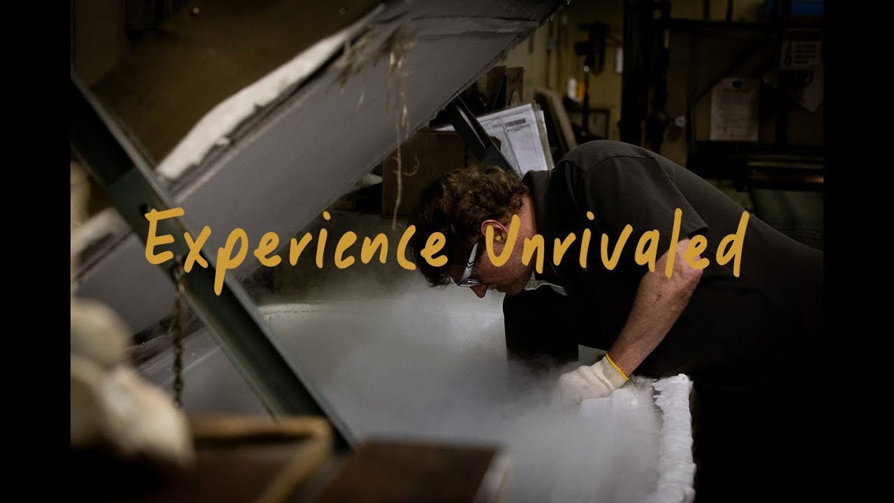 “You’re like a cook, they are certain recipes in heat treat,” Farner explains. He uses an oven that is over 50 feet long, which has four different temperature stages. The average temerature for most knife steels is around 1900 degrees fahrenheit. The quenching is done in a cyro freezer that can reach negative 220 degrees fahrenheit.