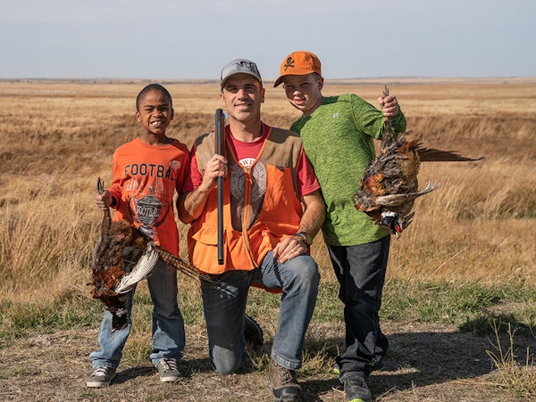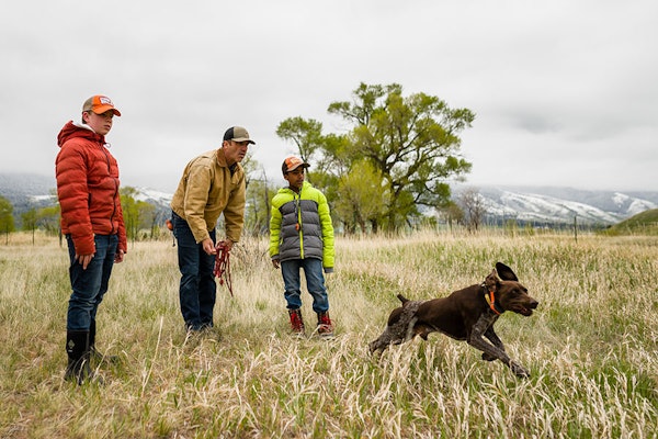 Erik Petersen’s youngest son, Kasa, holds tight to their one-year-old german shorthair’s collar. His brother, Henry, tosses a frozen pheasant 20 yards out in front of them and tells the pup, “fetch!” Kasa releases the eager Zeek from his grip, but lets go just a moment too late. He’s pulled onto his knees as the young dog lurches forward after the bird.