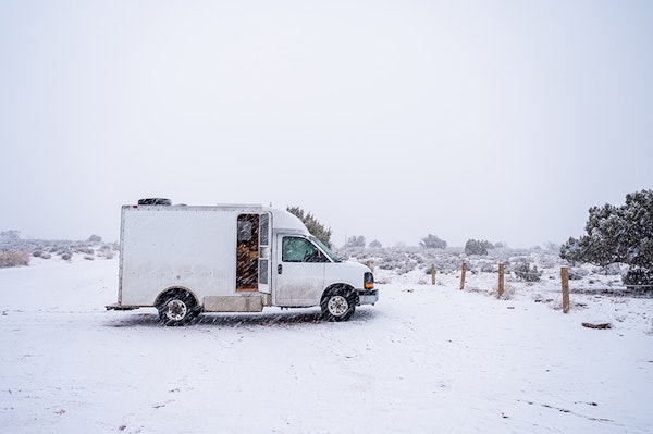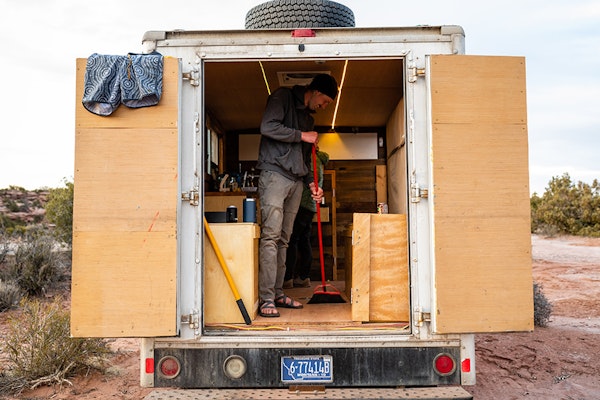 We prepared Van Gogh for the 10-hour drive. She’s a 2003 Chevy Express Box Truck we bought in 2017 from a hole-in-the-wall car dealership. She came equipped with a 6-liter V8 engine, 180,000 miles, and a lot of complimentary rust and corrosion. We built her out with two storage benches, a sink and counter, and a 3-burner stove, and topped her off with a solar panel. My husband works in carpentry and he taught me how to install the wood floors, sand, and varnish them. We epoxied the counter top in our landlord’s barn – fighting air bubbles and flies for hours.