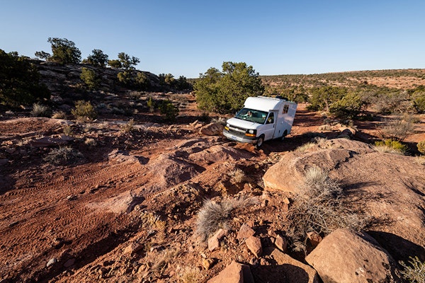 We spent three days running and hiking through Canyonlands National Park waiting for the rock to dry, and rallying the van up and down as many 4WD dirt roads as she could handle – waving to the side-by-side and lifted jeep drivers as they stared at us with confusion.