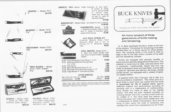 In the timeline that stitches it’s way through the 30-year corporate history of Buck Knives, the year 1975 is memorable for two principal reasons. First, net profits hit a record high. Second, and not coincidentally, 1975 was the year Al Buck began preparing for retirement.