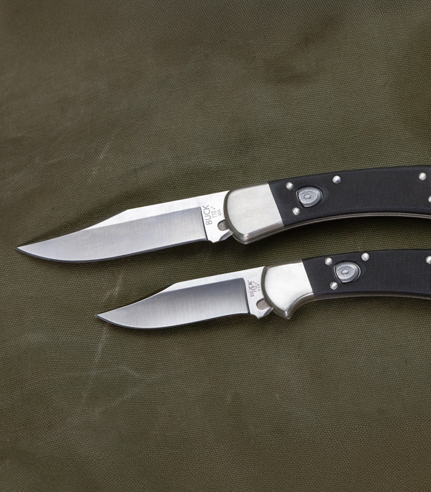 The 110 Folding Hunter & 112 Ranger are available as automatic knives. Available in the classic look with 420HC steel, or upgrade to S30V steel with brushed nickel silver bolsters and a G10 handle, these knives are ready to deploy at the push of a button.